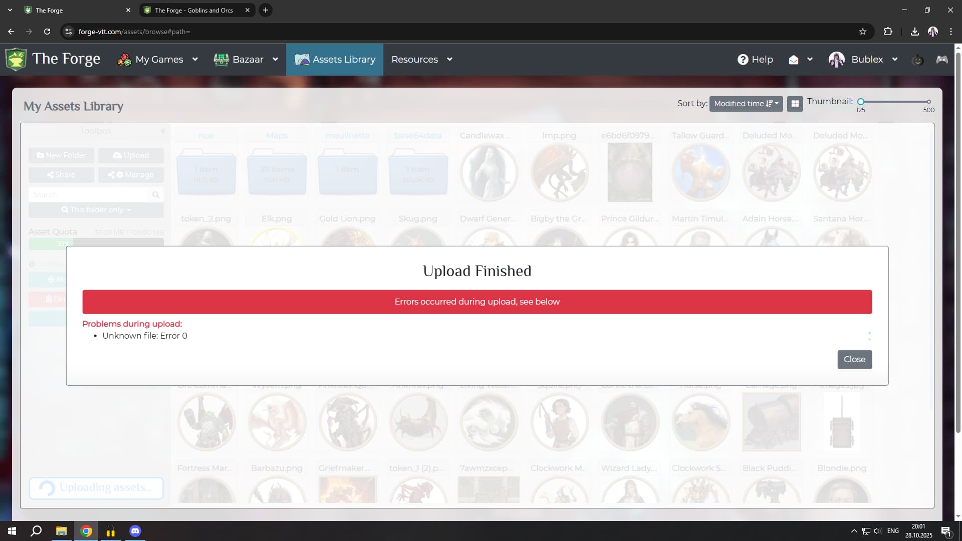 While Trying to appload JPG files to the library it gives this message. No other JPG or ZIP files areuploaded either.