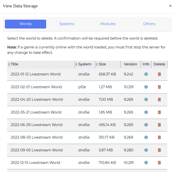 We only advise checking locally if you are certain there is a problem with your world, and that it will require action outside of editing it within the world. This is usually due to a module problem (explained below). You can check a world’s size locally by following the steps below.